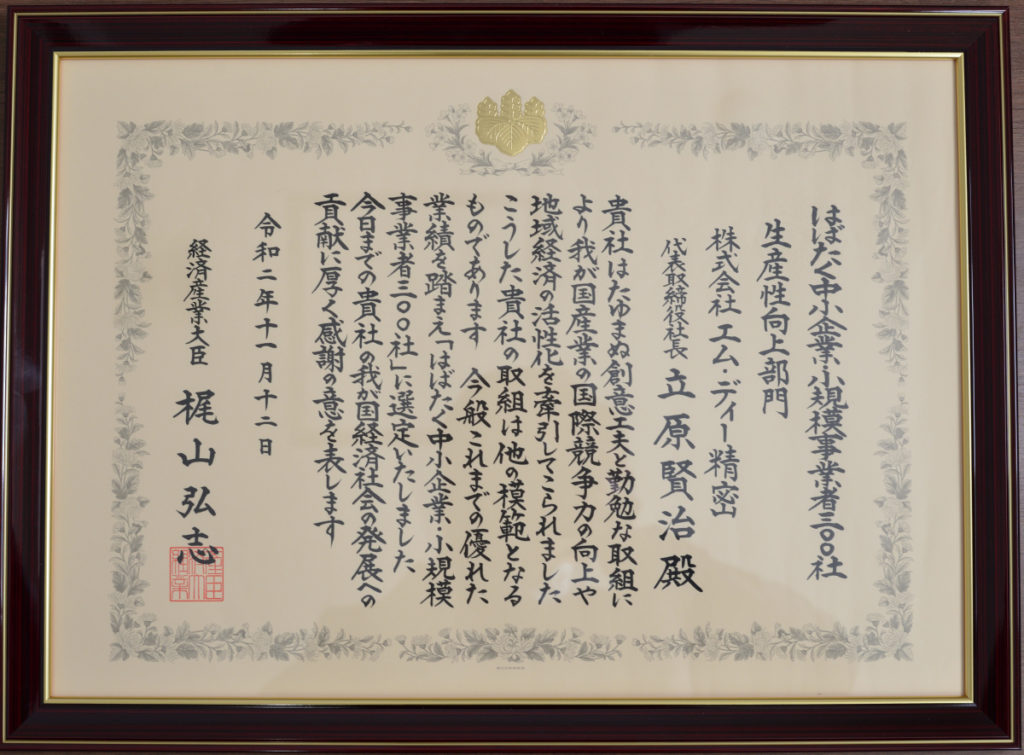 この度、弊社は経済産業省 中小企業庁が選定する「はばたく中小企業・小規模事業者300社」 2020 に選ばれました。